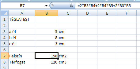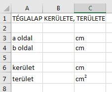 A B3 és B4 cellákba írjuk a megfelelő oldalak hosszát.