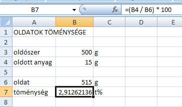 1. Készítsünk számolótáblát kémia órára, az oldatok töménységének kiszámításához!
