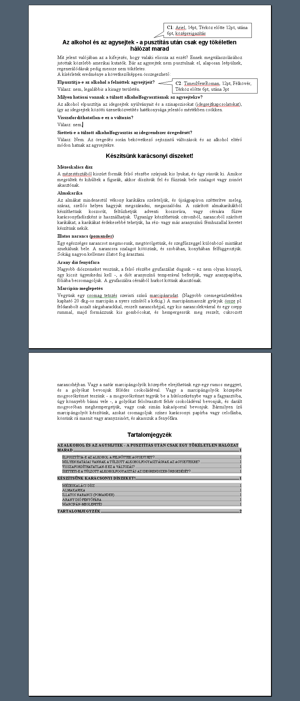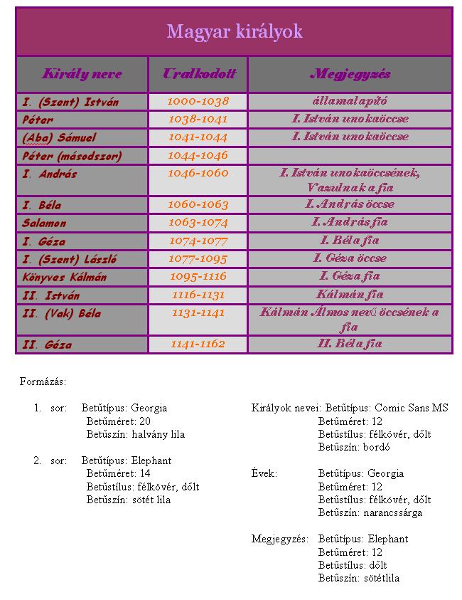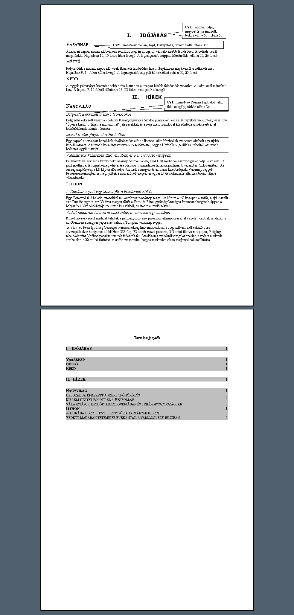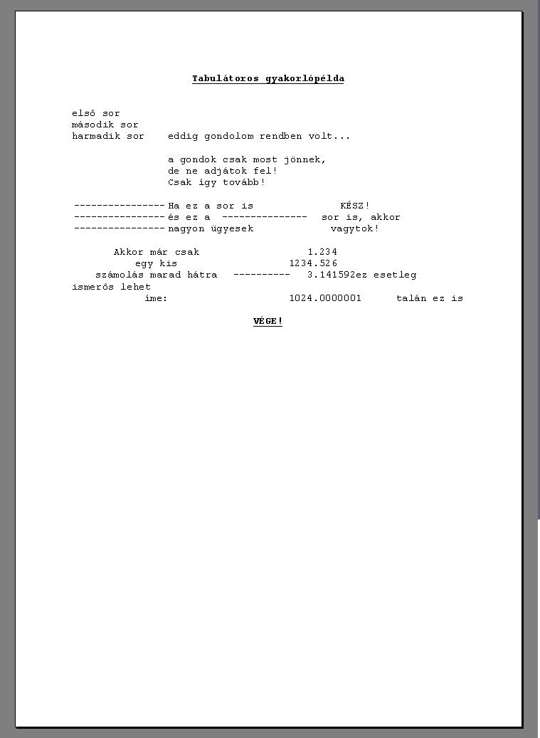 Karakterformázás 1 ny, 2 ny, 3 ny, 4 ny,