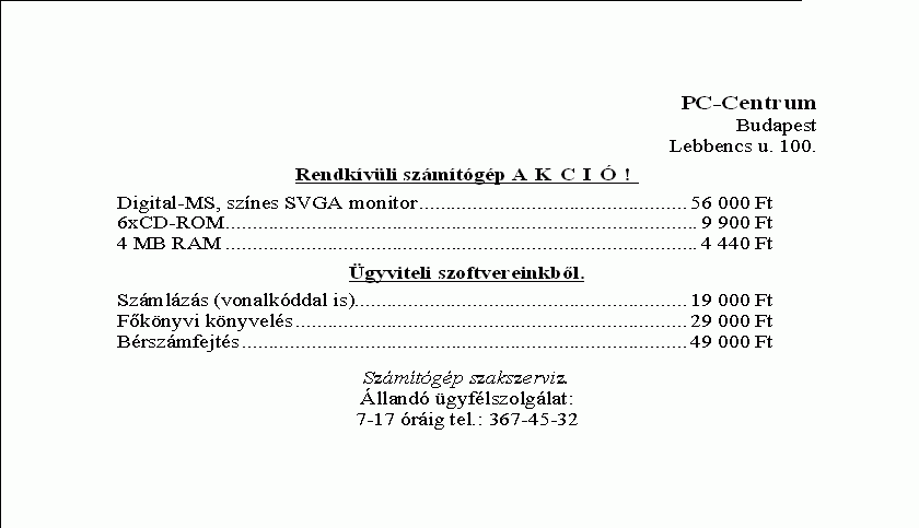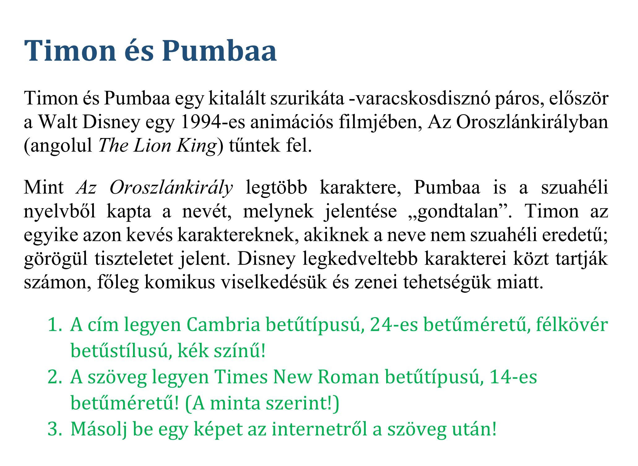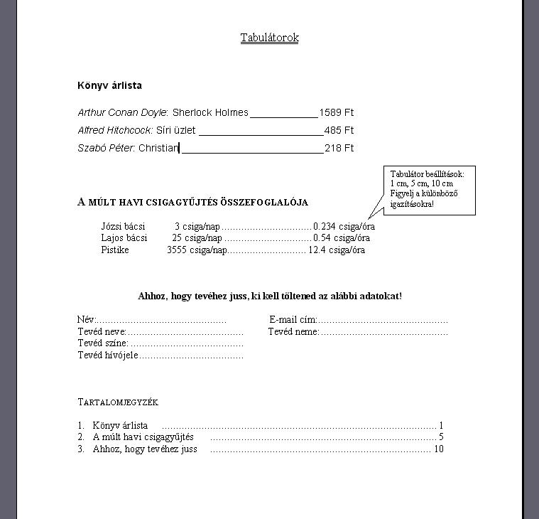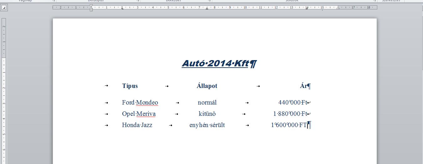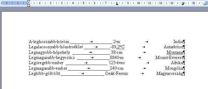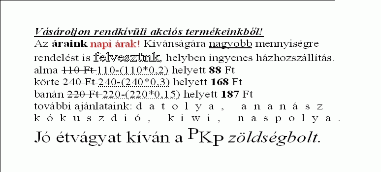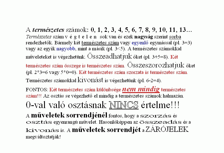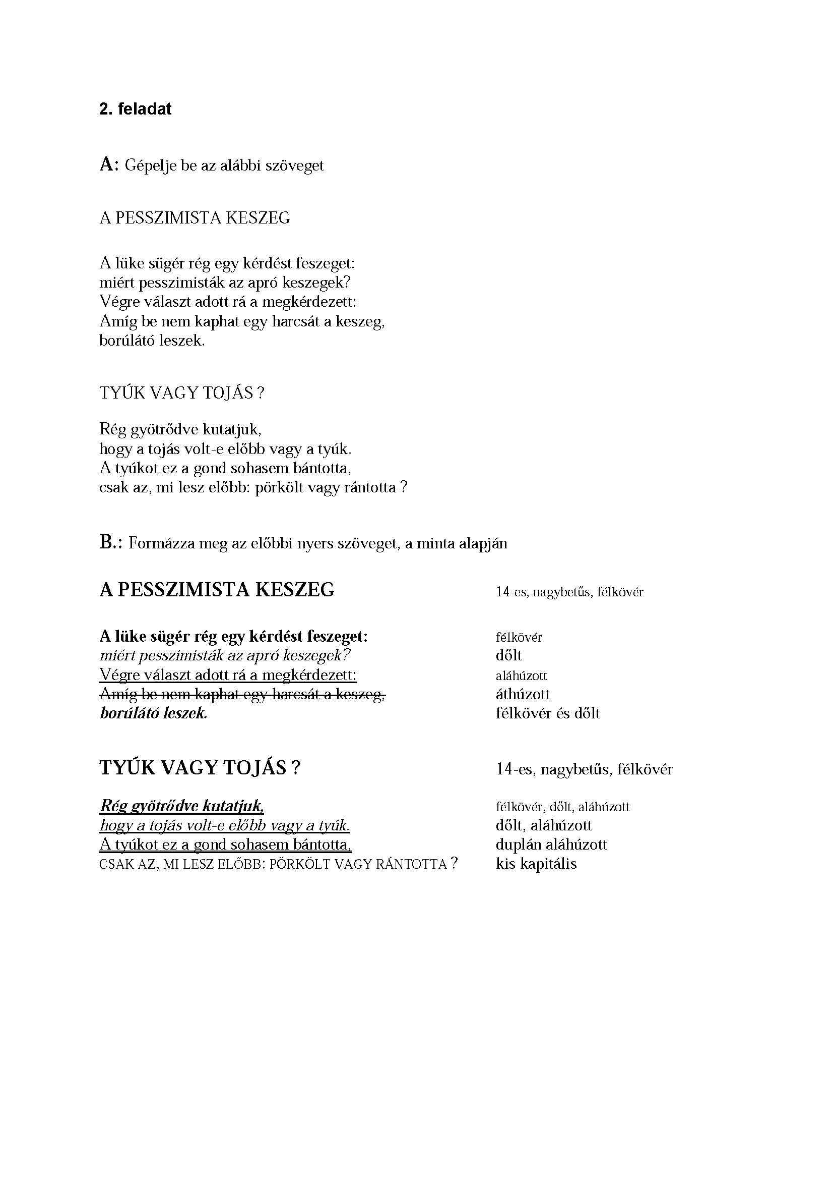 Karakterformázás 1 ny, 2 ny, 3 ny, 4 ny,